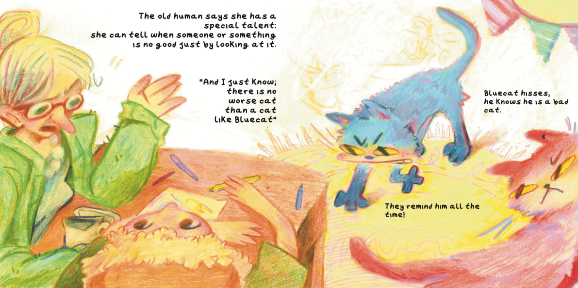 One would find the two siblings nearly identical, if not for the colour of their fur; but don’t be fooled! Despite their appearance their personalities could not be any more different, because, as the old human says “there is no worse cat than a cat like Bluecat” or so it seems; she appears so sure of it she must be correct… right?